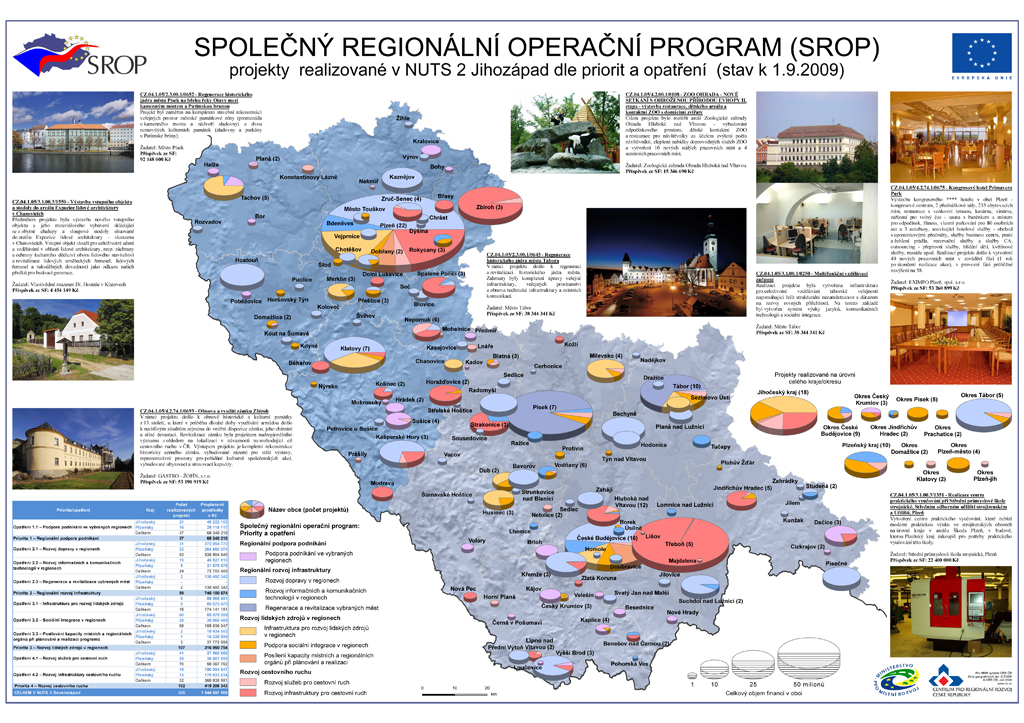 Projekty realizované v NUTS 2 Jihozápad dle priorit a opatření (stav k 1.9.2009) (Poster)