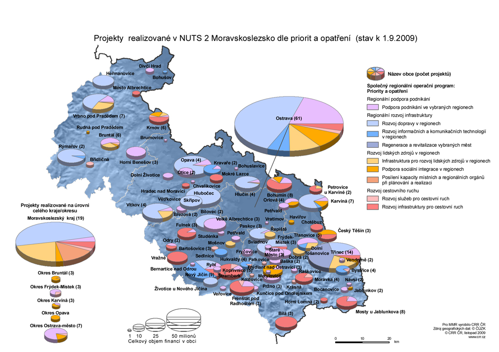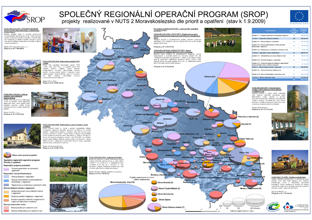 Projekty realizované v NUTS 2 Moravskoslezsko dle priorit a opatření (stav k 1.9.2009) (Poster)
