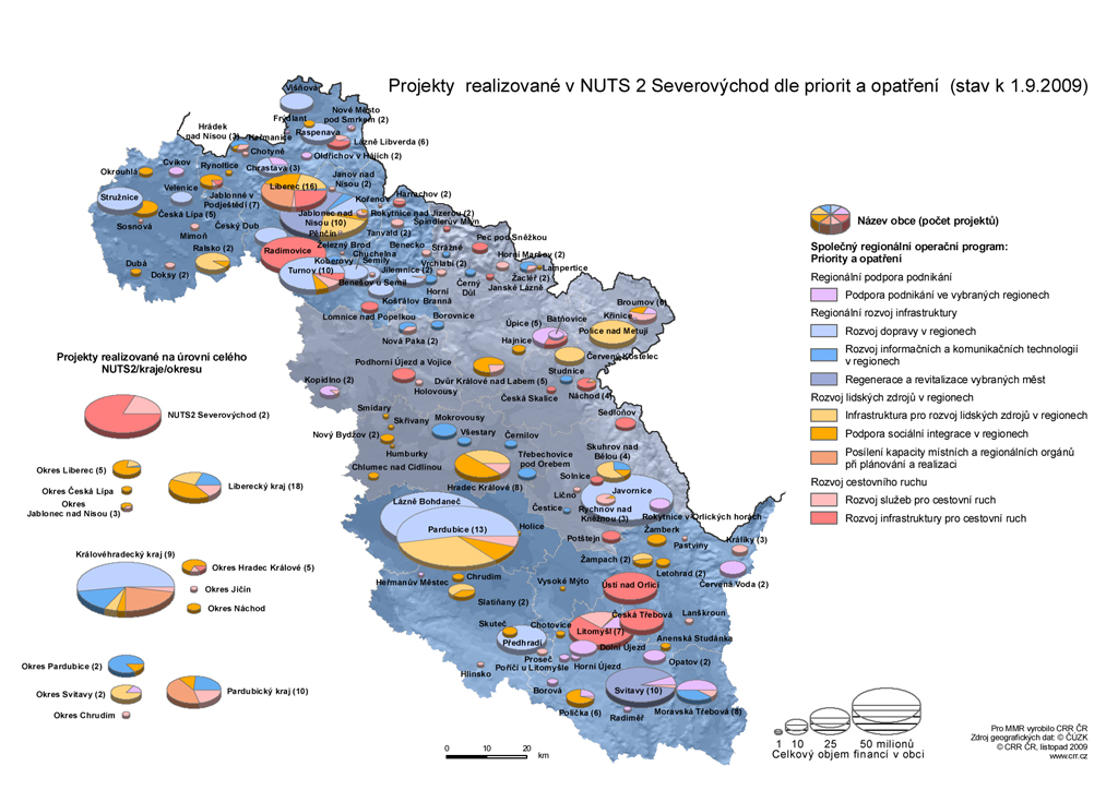 Projekty realizované v NUTS 2 Severovýchod (září 2011)