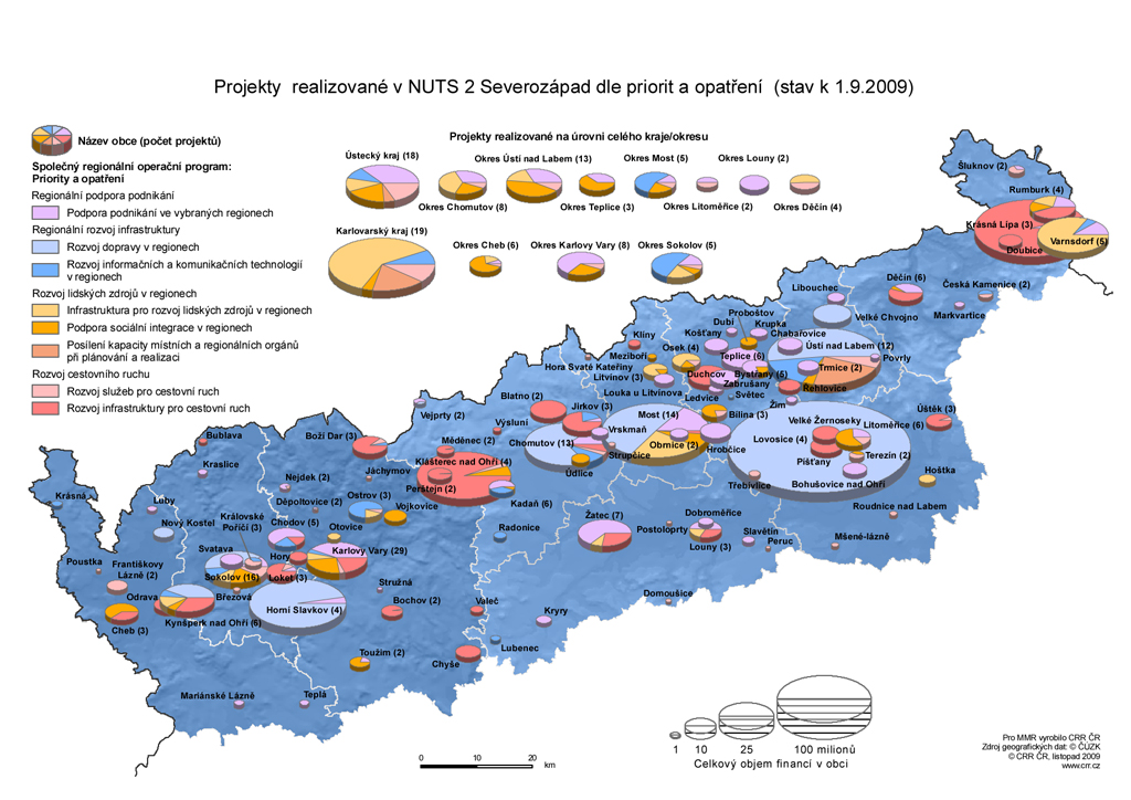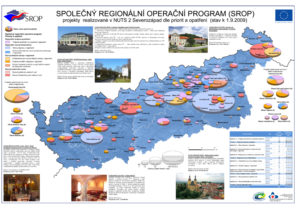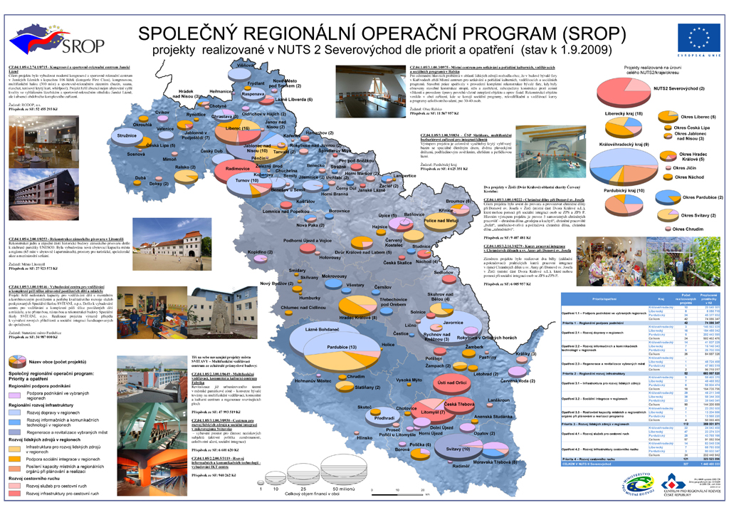 Projekty realizované v NUTS 2 Severozápad dle priorit a opatření (stav k 1.9.2009) (Poster)