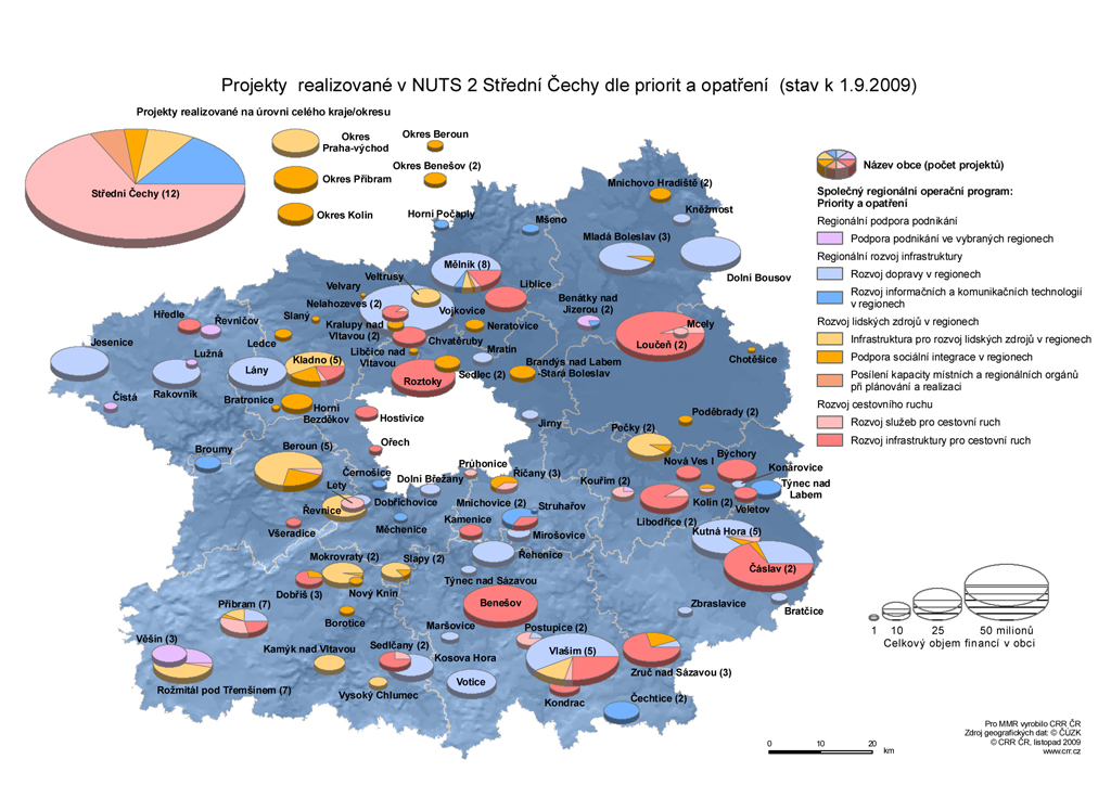 Projekty realizované v NUTS 2 Střední Čechy dle priorit a opatření (stav k 1.9.2009) (Poster)