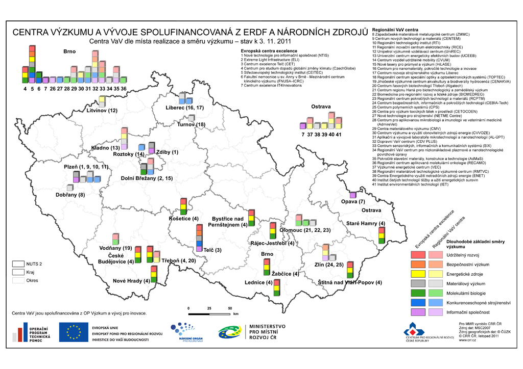 Centra výzkumu a vývoje spolufinancovaná z ERDF a národních zdrojů
