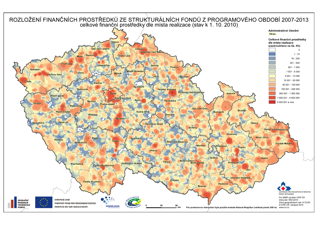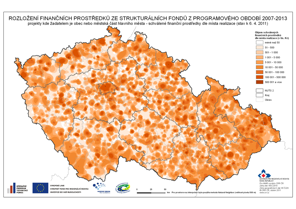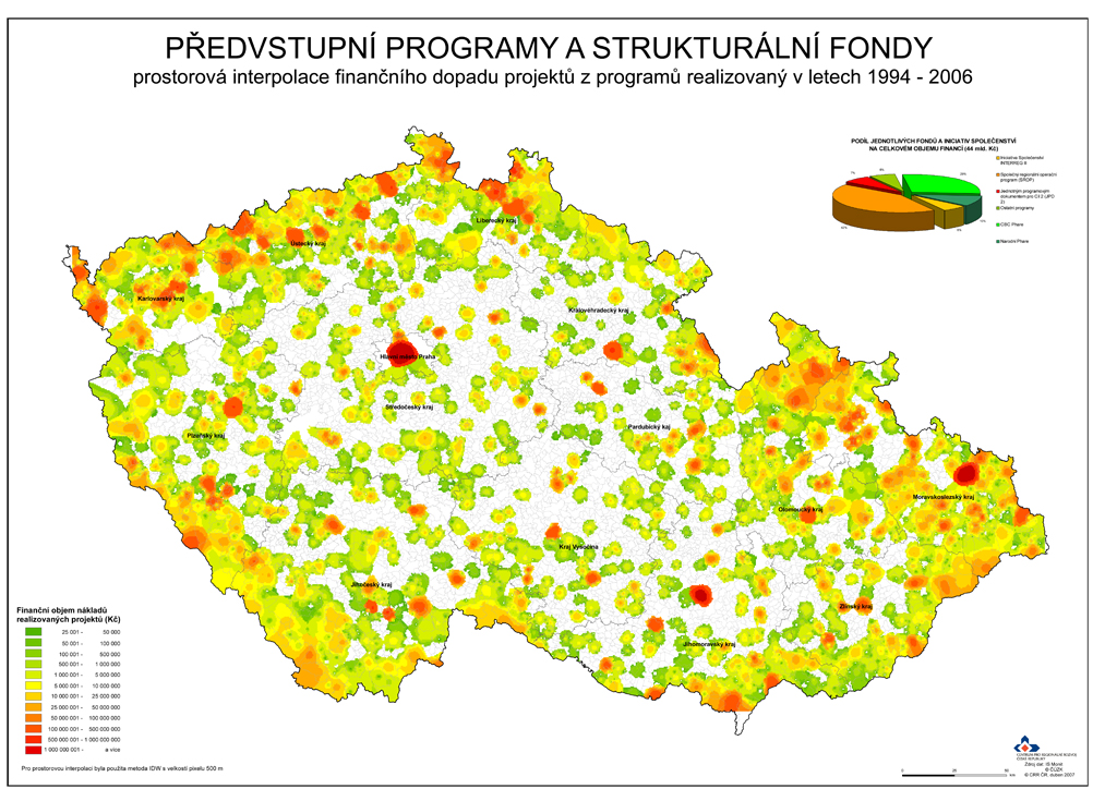 Prostorová interpolace finančního dopadu projektů z programů realizovaných v letech 1994 - 2006