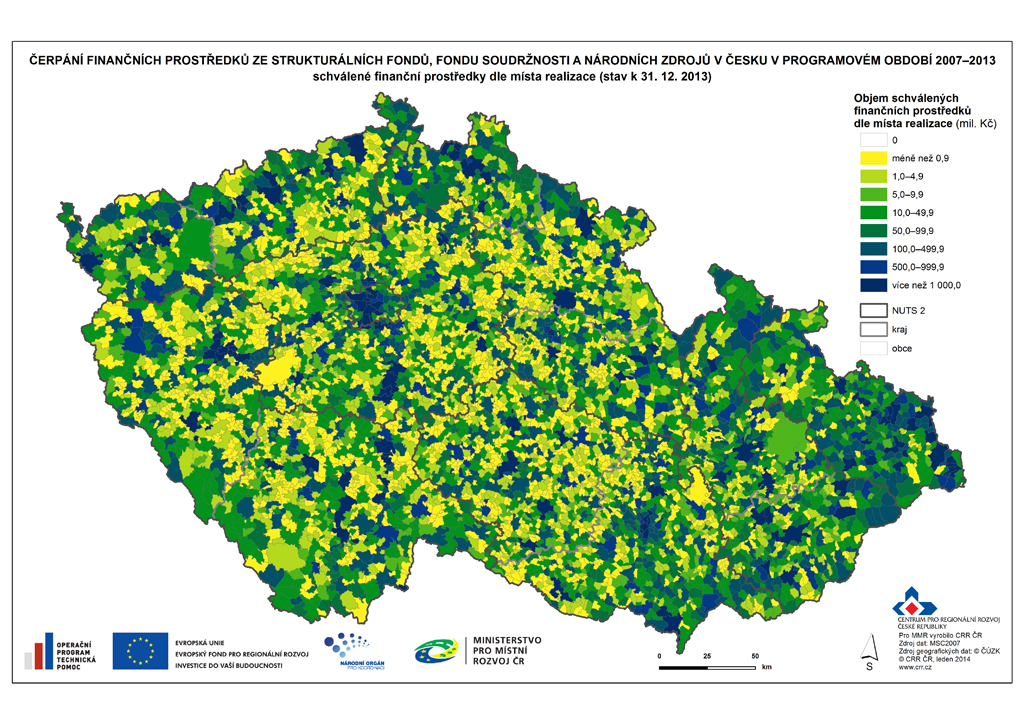 Čerpáni finančních prostředků dle místa realizace k 31.12.2013