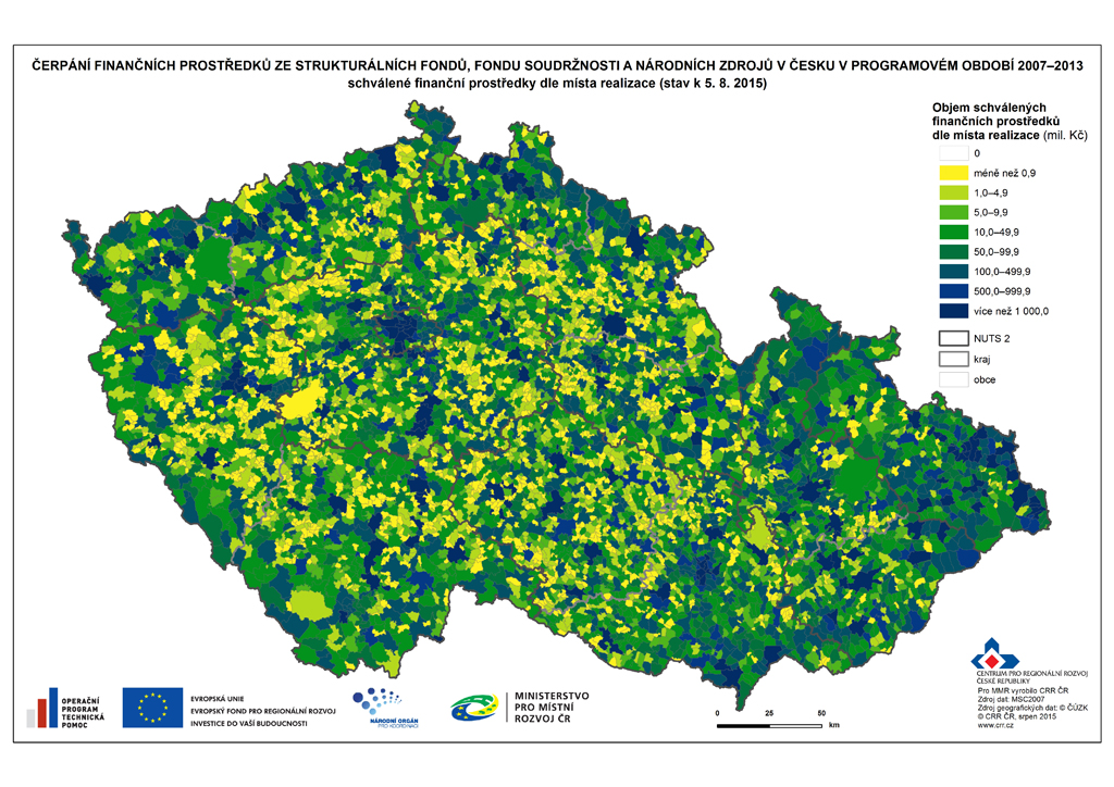 Čerpáni finančních prostředků dle místa realizace k 5.8.2015