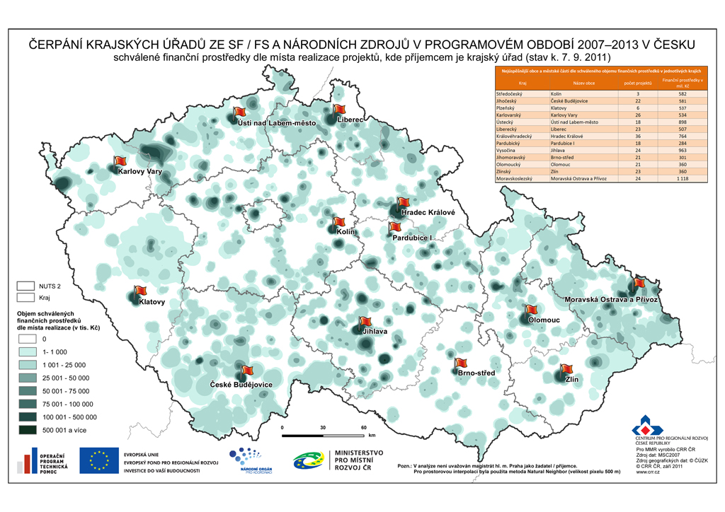 Čerpání krajských úřadů ze SF/FS a národních zdrojů k 7. 9. 2011 - interpolace