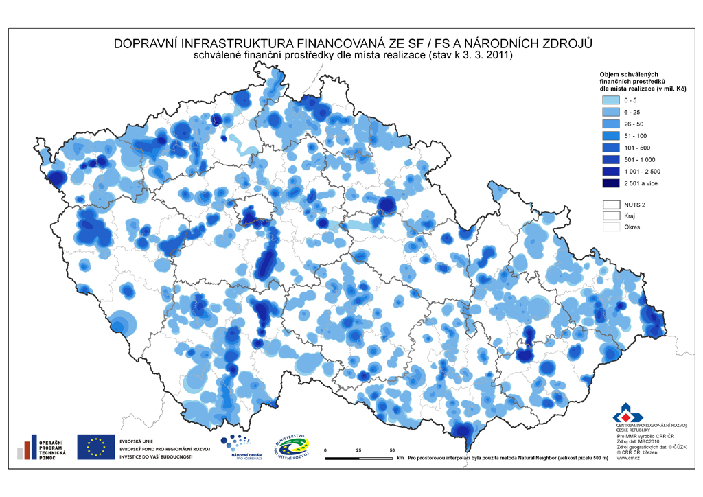 Dopravní infrastruktura - Rozložení projektů a finančních prostředků ze SF 2007-2013 - Interpolace