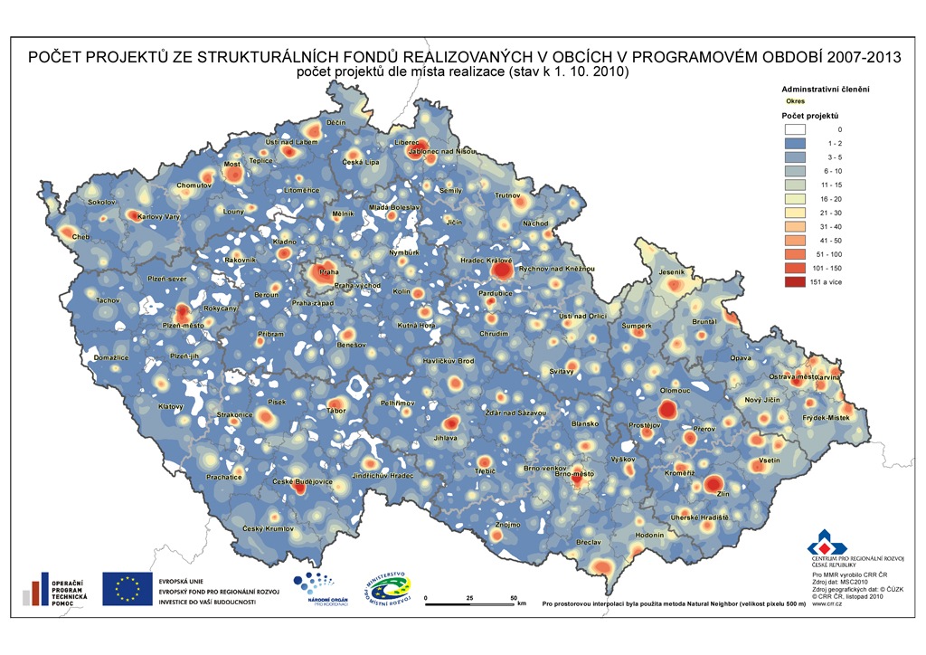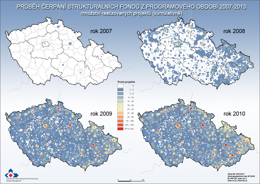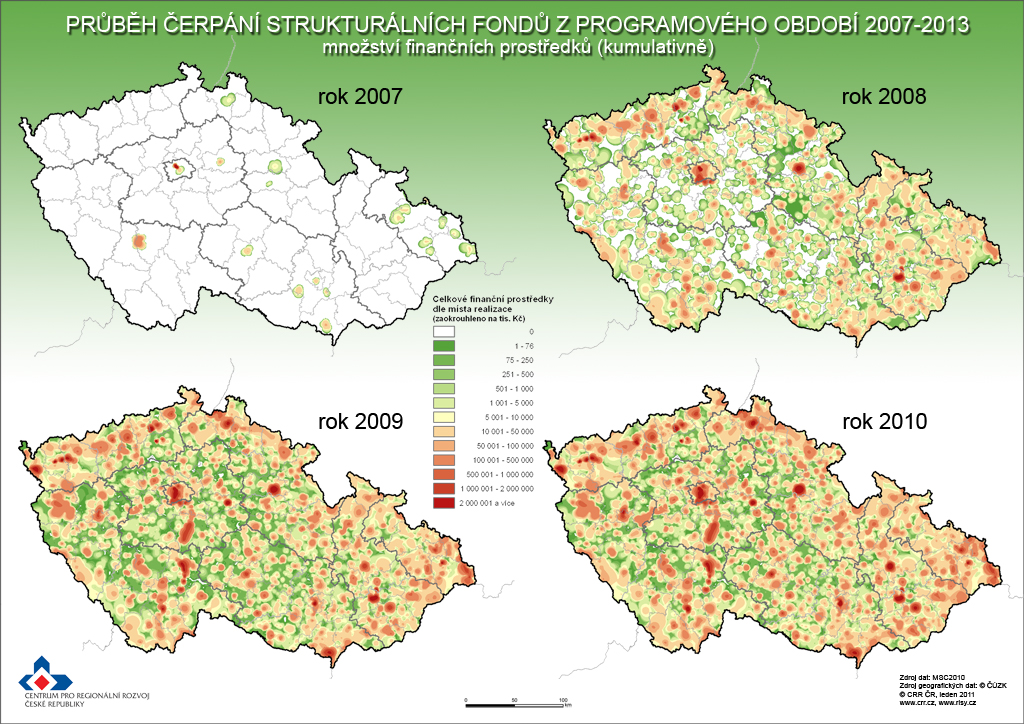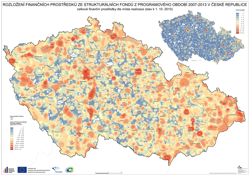 Rozložení projektů a finančních prostředků ze SF 2007-2013 - Interpolace